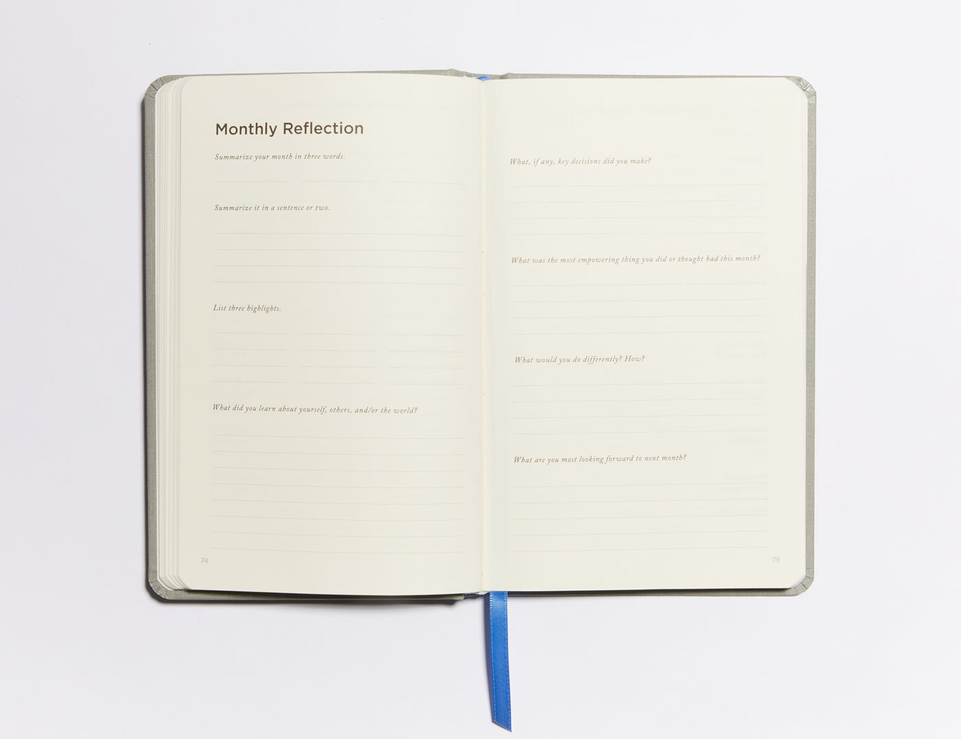 An included Monthly Reflection keeps the days from running together. As you look back on the month as a whole, youโll gain even greater clarity about where youโre headed. Our signature Q&A format keeps the process simple, adding a handful of well-spent minutes to your regular journaling time.