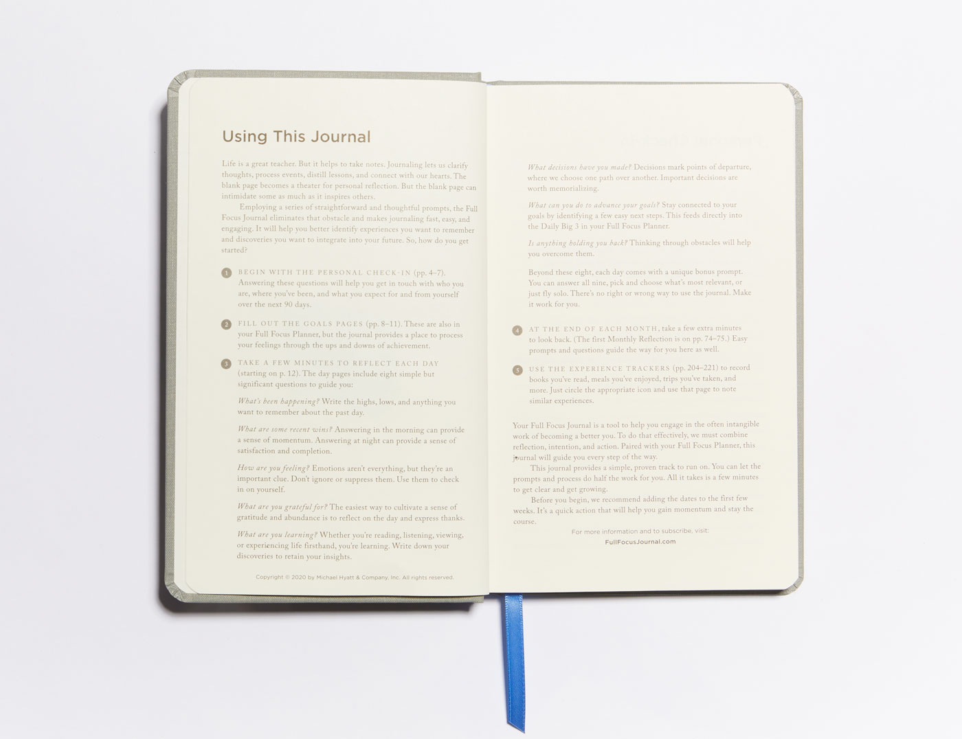 New prompts near the beginning of the Journal ask for a six-word autobiography, words to live by for this quarter, and more. These questions set a foundation for your next 90 days of daily reflection.